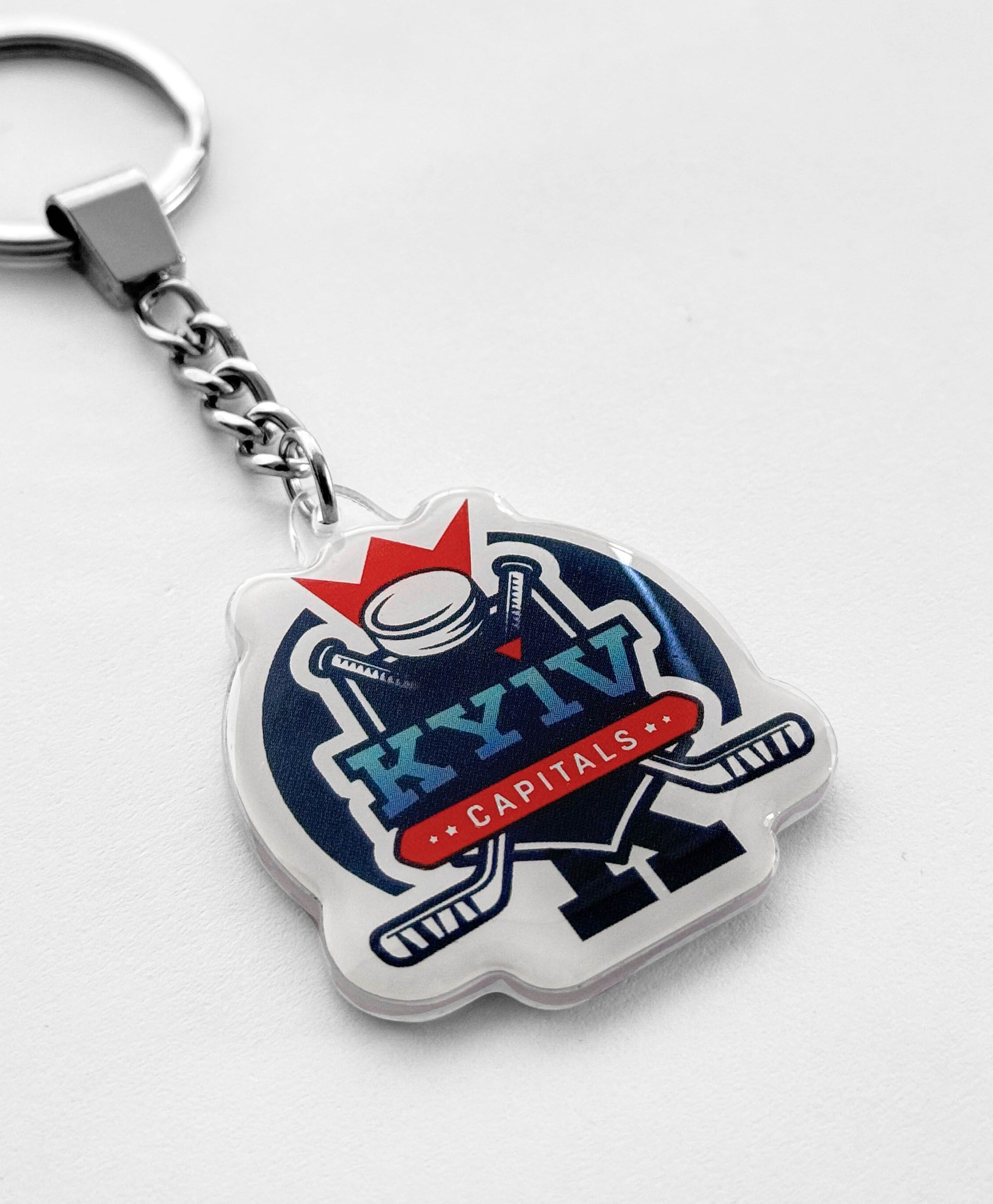 Виготовлений з пластику, цей брелок має логотип Кепіталз, з ключками та шайбою, що утворюють унікальний герб. Ідеальний для демонстрації свого командного духу.