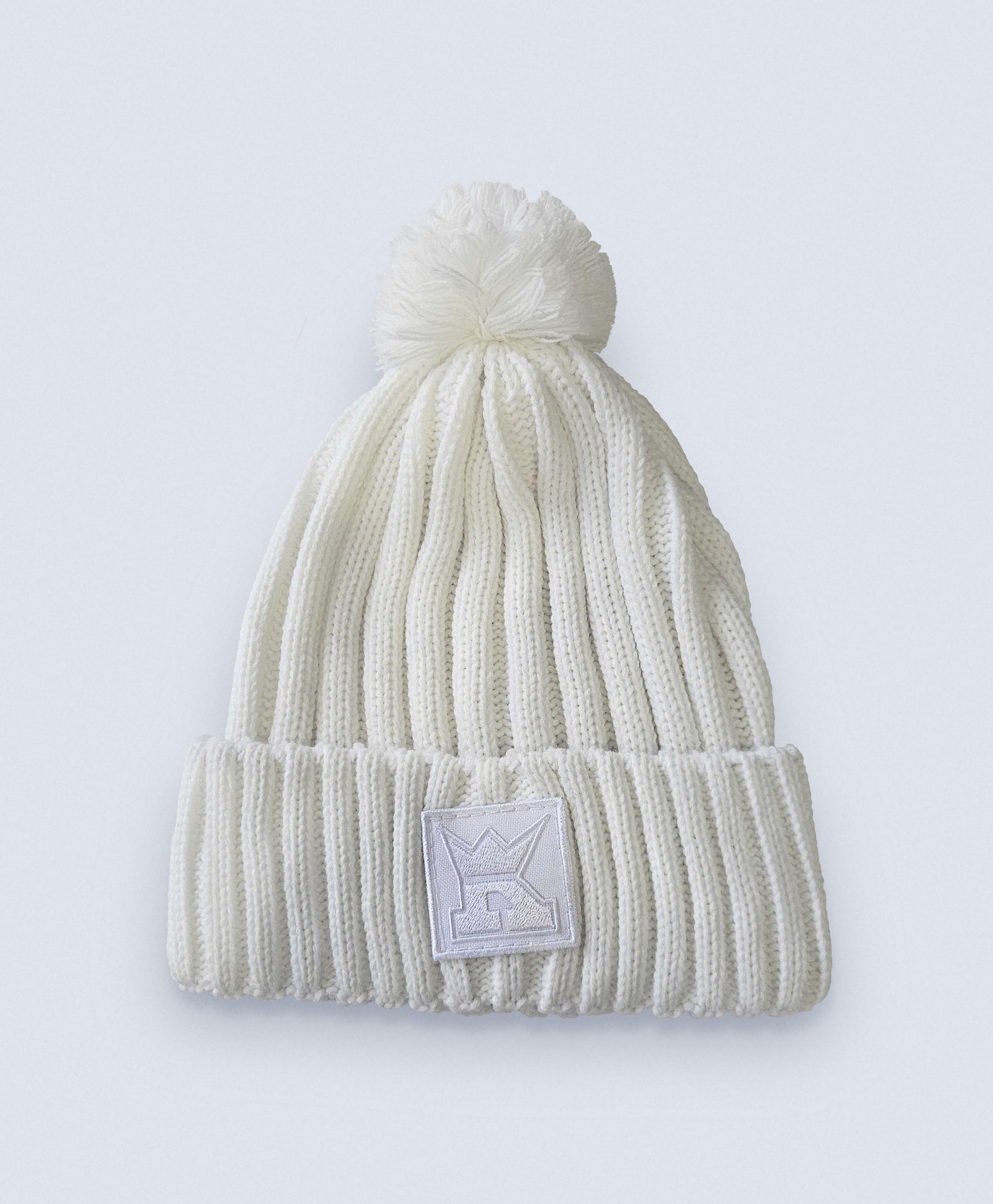 Представляємо нашу білу шапку з помпоном і логотипом, яка ідеально підходить для тих, хто хоче додати до свого стилю трохи шику.